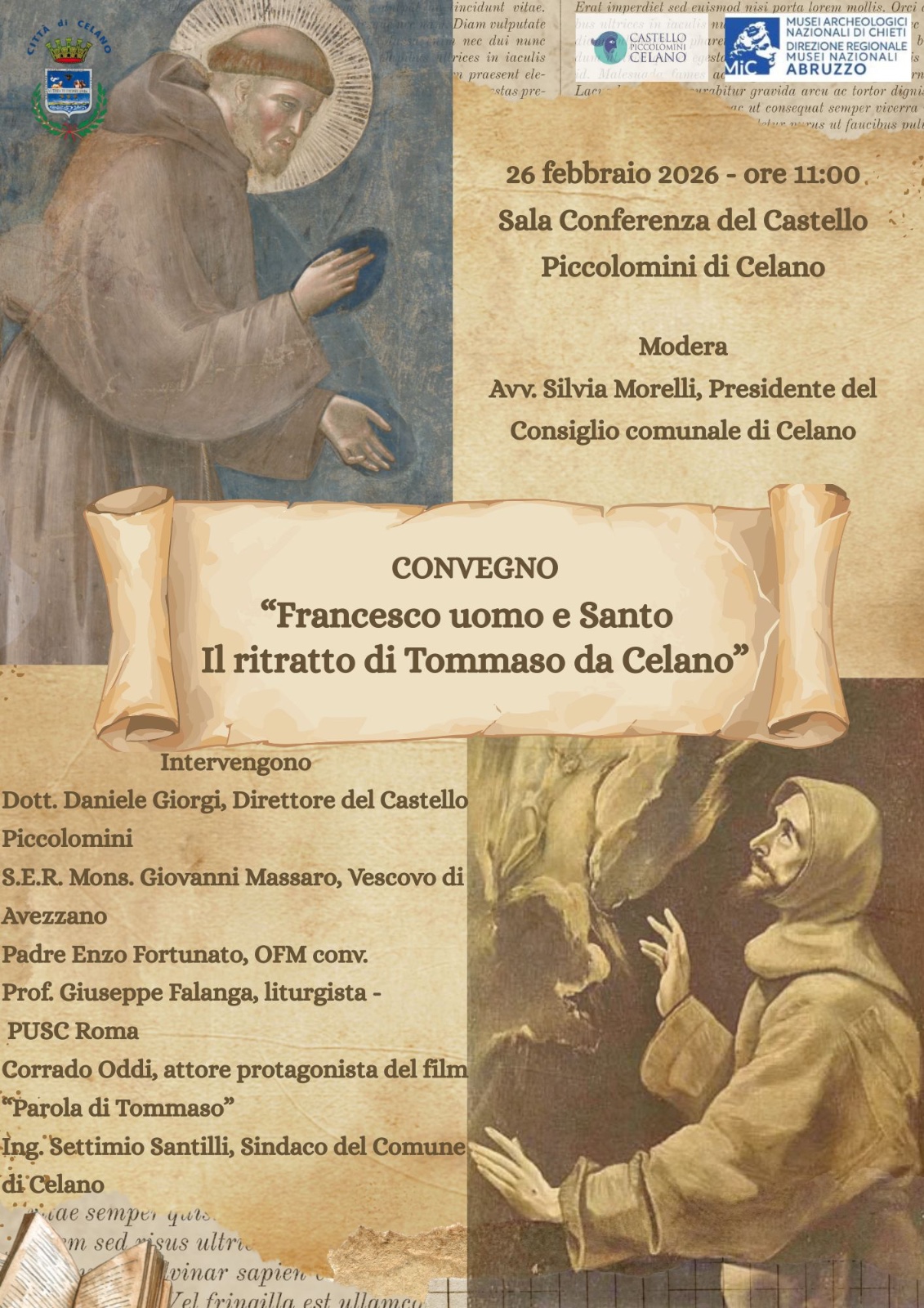 “Celano rivendica con orgoglio la figura di Tommaso quale patrimonio identitario della nostra comunità” - dichiara il Sindaco Settimio Santilli. “Non parliamo soltanto di un autore medievale, ma di un uomo che ha saputo raccontare la santità con rigore storico e profondità spirituale. Questo convegno rappresenta un passaggio fondamentale per riaffermare il valore universale del suo contributo e per sostenere con convinzione il percorso di pieno riconoscimento ecclesiale della sua testimonianza”.